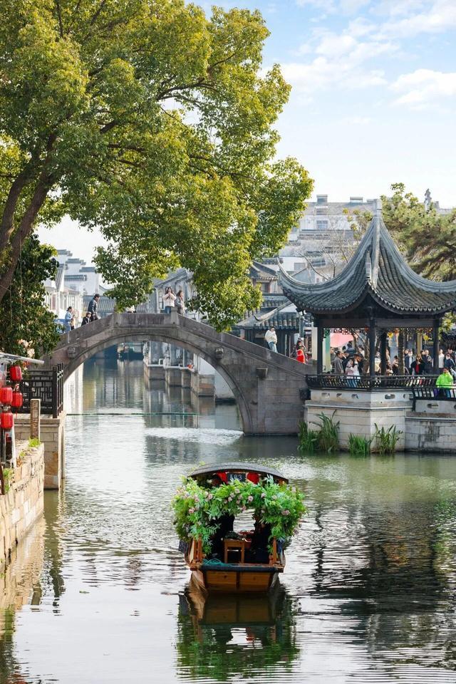 春日漫步其间,微风拂面,花香萦绕,看摇橹船缓缓划过水面,船桨搅碎河面的繁花倒影,听船夫吟唱吴侬软语,瞬间便沉醉在这江南的温柔乡里。