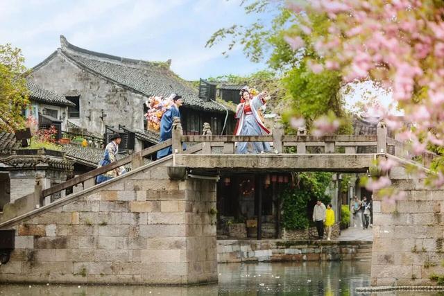 樱花、玉兰花次第绽放,沿着河岸、爬上古桥、缀满墙头,将古镇装点成一幅流动的水墨长卷。